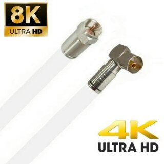 TV Antennenkabel Koaxkabel RG6 Winkel Kupplung F-Stecker 135dB HD 4K 8k HQ 7mm Weiß 34m